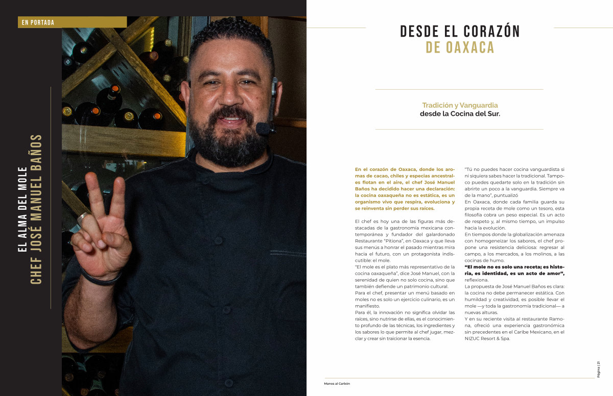 El chef es hoy una de las figuras más destacadas de la gastronomía mexicana contemporánea y fundador del galardonado Restaurante“ Pitiona”, en Oaxaca y que lleva sus menús a honrar el pasado mientras mira hacia el futuro, con un protagonista indiscutible: el mole.“ El mole es el plato más representativo de la cocina oaxaqueña”, dice José Manuel, con la serenidad de quien no solo cocina, sino que también defiende un patrimonio cultural. Para el chef, presentar un menú basado en moles no es solo un ejercicio culinario, es un manifiesto. Para él, la innovación no significa olvidar las raíces, sino nutrirse de ellas, es el conocimiento profundo de las técnicas, los ingredientes y los sabores lo que permite al chef jugar, mezclar y crear sin traicionar la esencia.