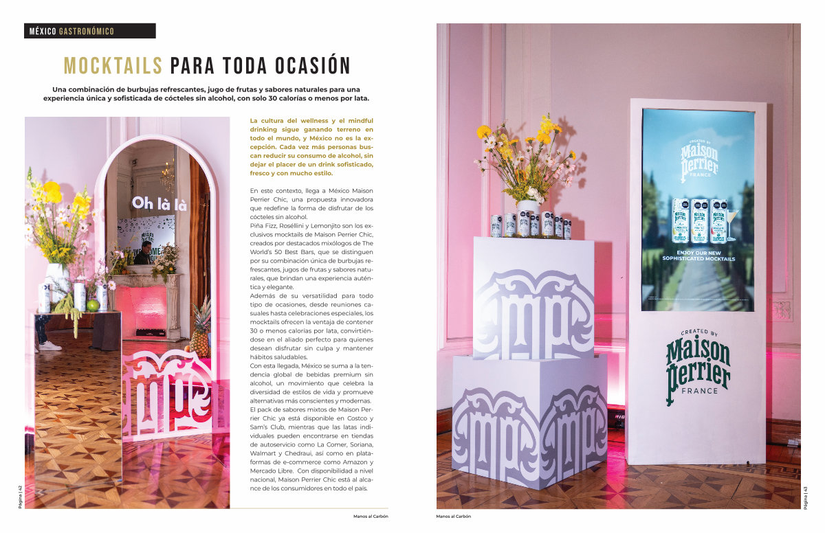 En este contexto, llega a México Maison Perrier Chic, una propuesta innovadora que redefine la forma de disfrutar de los cócteles sin alcohol. Piña Fizz, Roséllini y Lemonjito son los exclusivos mocktails de Maison Perrier Chic, creados por destacados mixólogos de The World’ s 50 Best Bars, que se distinguen por su combinación única de burbujas refrescantes, jugos de frutas y sabores naturales, que brindan una experiencia auténtica y elegante. Además de su versatilidad para todo tipo de ocasiones, desde reuniones casuales hasta celebraciones especiales, los mocktails ofrecen la ventaja de contener 30 o menos calorías por lata, convirtiéndose en el aliado perfecto para quienes desean disfrutar sin culpa y mantener hábitos saludables. Con esta llegada, México se suma a la tendencia global de bebidas premium sin alcohol, un movimiento que celebra la diversidad de estilos de vida y promueve alternativas más conscientes y modernas. El pack de sabores mixtos de Maison Perrier Chic ya está disponible en Costco y Sam’ s Club, mientras que las latas individuales pueden encontrarse en tiendas de autoservicio como La Comer, Soriana, Walmart y Chedraui, así como en plataformas de e-commerce como Amazon y Mercado Libre. Con disponibilidad a nivel nacional, Maison Perrier Chic está al alcance de los consumidores en todo el país.