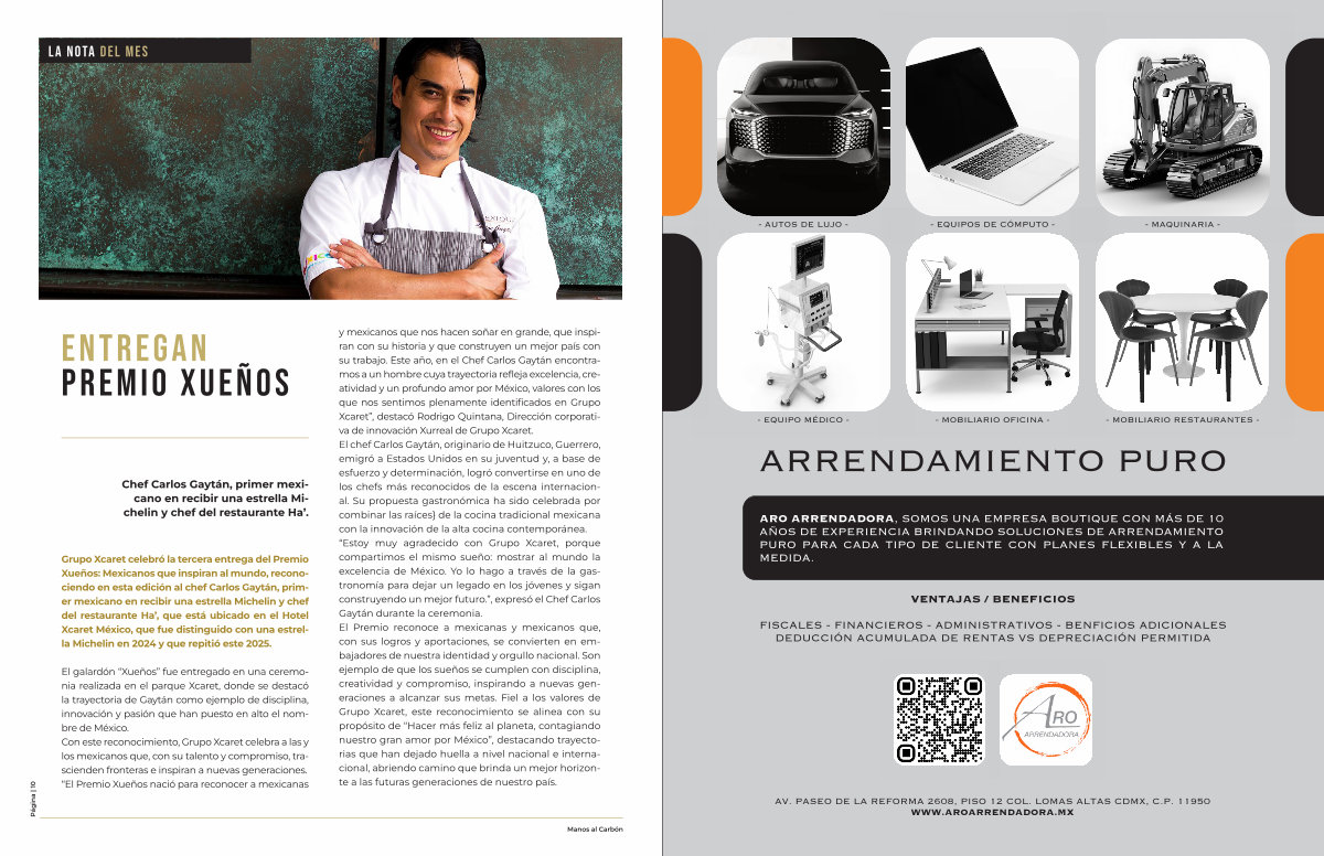 AV. PASEO DE LA REFORMA 2608, PISO 12 COL. LOMAS ALTAS CDMX, C. P. 11950 WWW. AROARRENDADORA. MX