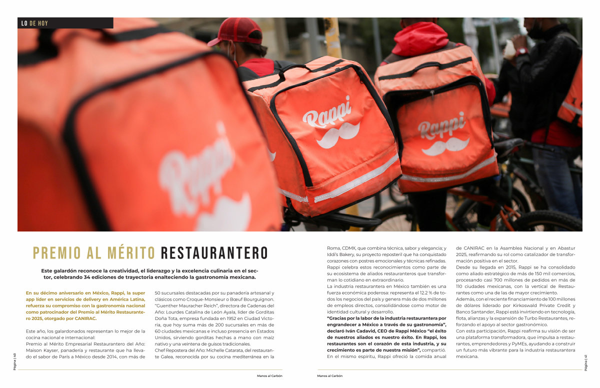 En su décimo aniversario en México, Rappi, la super app líder en servicios de delivery en América Latina, refuerza su compromiso con la gastronomía nacional como patrocinador del Premio al Mérito Restaurantero 2025, otorgado por CANIRAC.