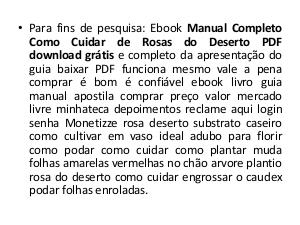 Como Cuidar de Rosas do Deserto PDF