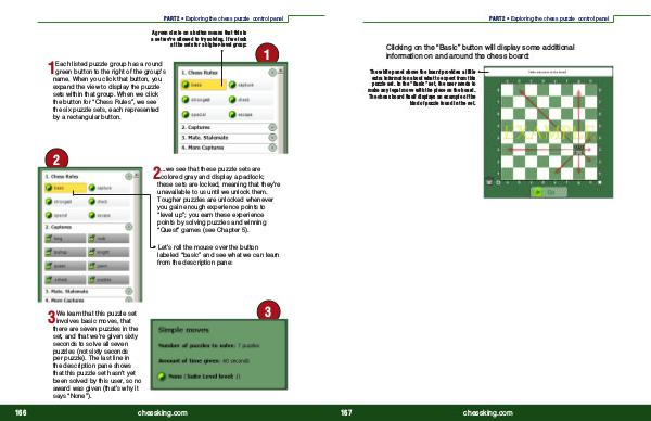 1Each listed puzzle group has a round green button to the right of the group ' s name. When you click that button, you expand the view to display the puzzle sets within that group. When we click the button for“ Chess Rules”, we see the six puzzle sets, each represented by a rectangular button.