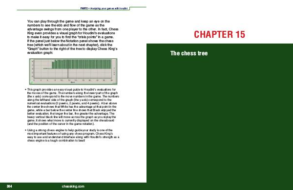 You can play through the game and keep an eye on the numbers to see the ebb and flow of the game as the advantage swings from one player to the other. In fact, Chess King even provides a visual graph for Houdini ' s evaluations to make it easy for you to find the“ crisis points” in a game. If the panel just below the Notation panel shows the chess tree( which we ' ll learn about in the next chapter), click the“ Graph” button to the right of the tree to display Chess King ' s evaluation graph: