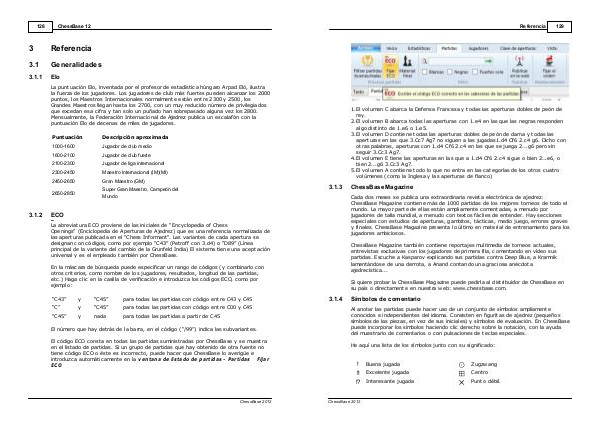 símbolos de las piezas, en vez de sus iniciales) y símbolos de evaluación. En ChessBase