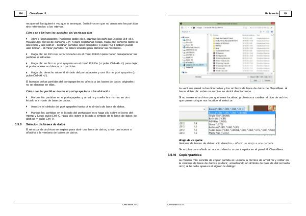 La ventana muestra los directorios y los archivos de base de datos de ChessBase. Al