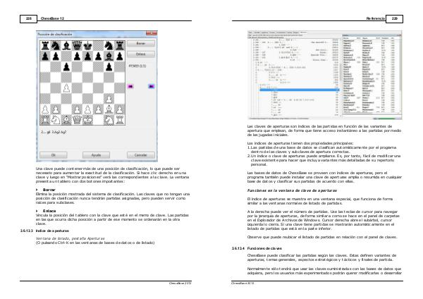 Los índices de aperturas tienen dos propiedades principales: 1. Las partidas de una base de datos se clasifican automáticamente por el programa dentro de las claves y subclaves de apertura correctas.