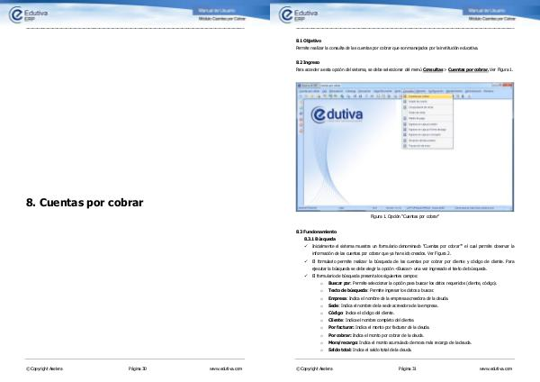 Permite realizar la consulta de las cuentas por cobrar que son manejados por la institución educativa.