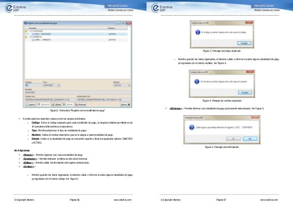 Permite guardar los datos ingresados, el sistema valida e informa si existe alguna modalidad de pago ya ingresada con el mismo código. Ver Figura 3.