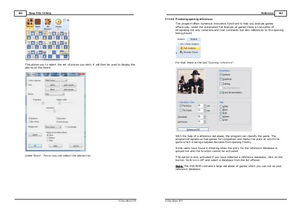 262 Deep Fritz 14 Help This allows you to select the set of pieces you wish; it will then be used to display the pieces on the board. Under Boa rd - Pie c e s you can select the pieces too. © ChessBase 2013