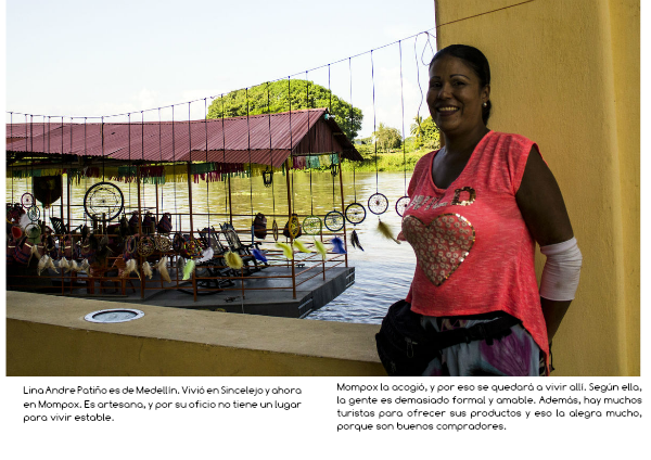 Lina Andre Patiño es de Medellín. Vivió en Sincelejo y ahora en Mompox. Es artesana, y por su oficio no tiene un lugar para vivir estable.
