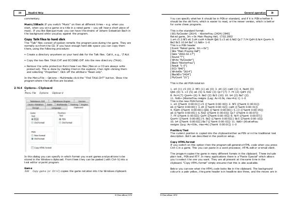 The current position is copied into the clipboard either as FEN or in the traditional text