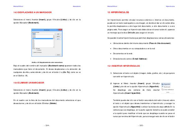 Un hipervínculo permite vincular recursos externos o internos al documento, puede ser un texto( subrayado) o una imagen, en donde al dar un clic sobre ellos le permite desplazarse a otro lugar del documento, a otro documento o a una página web. Para seguir un hipervínculo debe ubicar el cursor sobre él, aparece un mensaje que le dice Ctrl + clic para seguir el vínculo.