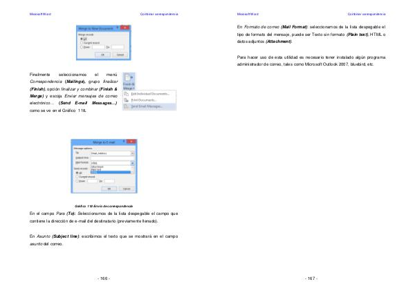 118 Envío de correspondencia En el campo Para( To): Seleccionamos de la lista despegable el campo que contiene la dirección de e-mail del destinatario( previamente llenado).