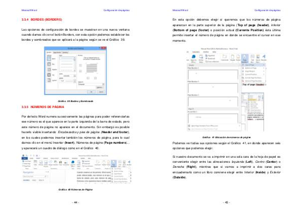 Gráfico 41 Ubicación de números de página Podemos ver todas sus opciones según el Gráfico 41, en donde aparecen seis opciones que podemos elegir.