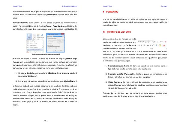 Formato( Format). Para acceder a esta opción elegimos del mismo menú la opción Formato de Números de Página( Format Page Numbers …) Este botón permite elegir el formato de los números de página, como se ve en el Gráfico 44.