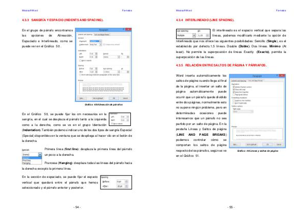 Word inserta automáticamente los saltos de página cuando llega al final de la página, al insertar un salto de página automáticamente puede ocurrir que un párrafo quede dividido entre dos páginas, normalmente esto no supone ningún problema, pero en determinadas ocasiones puede interesarnos que un párrafo no sea partido por un salto de página. En la pestaña Líneas y Saltos de página( LINE AND PAGE BREAKS) podemos controlar cómo se comportan los saltos de página respecto de los párrafos, según se ve en el Gráfico 51.