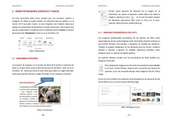 Un buen documento debe incluir, siempre que sea necesario, gráficos o imágenes. En Word se puede trabajar con diferentes tipos de gráficos, en la versión 2013 se puede insertar no solo imágenes sino también videos que podrán ser reproducidos directamente en nuestro documento. Para insertar este tipo de complementos, se debe dar clic en la pestaña Insertar( Insert) en el panel de Ilustraciones( Illustrations) como se ve en el Gráfico 58.