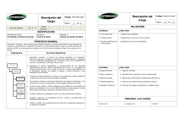 Nombre del Cargo: Coordinador de Gestión de Gente