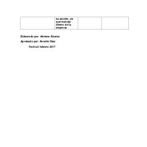 su puesto, ya que maneja dinero de la empresa Elaborado por: Adriana Álvarez Aprobado por: Annelin Díaz Fecha:2 febrero 2017
