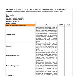 Educación: P( ) CB( ) B( ) TM( ) TSU( X ) PROFESIONAL( X ) POSTGRADO(