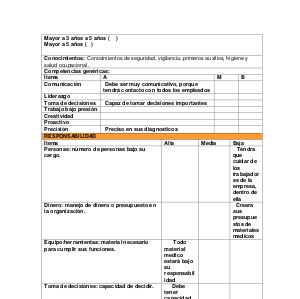 Conocimientos: Conocimientos de seguridad, vigilancia, primeros auxilios, higiene y