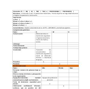 Mencione: Licenciado o Lcda. en Relaciones Industriales, Técnico Superior en Seguridad Industrial