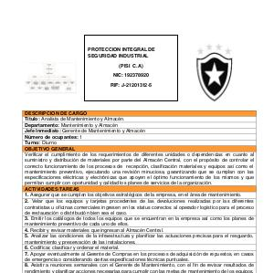 Jefe Inmediato: Gerente de Mantenimiento y Almacén