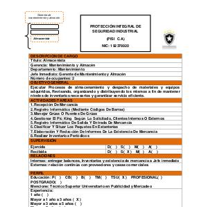 Jefe Inmediato: Gerente de Mantenimiento y Almacén