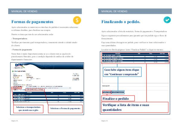 Após selecionados os materiais na interface de pedidos é necessário selecionar