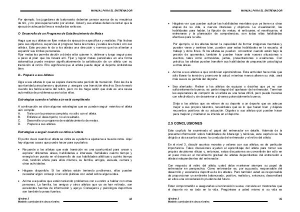 suficientemente buenos, es parte integral del quehacer del entrenador. Terminar