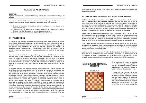 � Explicar el concepto de debilidad, así como el papel de las piezas en el ataque al enroque. � Describir lo que es el juego posicional y su relación con el juego combinatorio � Explicar modelos derivados del avance del peón caballo. � Exponer las características del sistema de ataque Pillsbury.