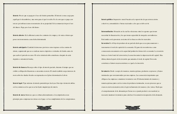 Interés: Precio que se paga por el uso de fondos prestables. El interés es una carga para