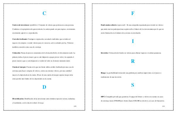 Cartera de inversiones: (portfolio) - Conjunto de valores que pertenecen a una persona.