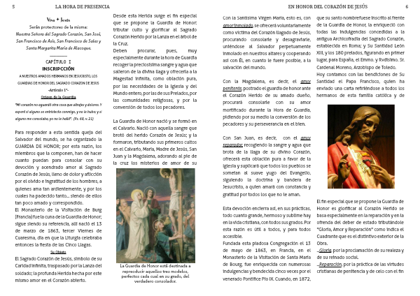 Con la Magdalena, es decir, el amor penitente, postrado el guardia de honor ante el Corazón Herido de su amado dueño, procurará consolarle con su amor mortificado durante la Hora de Guardia, pidiendo por su medio la conversión de los pecadores y su perseverancia en el bien.