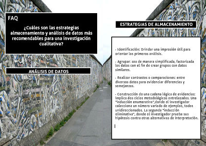 - Construcción de una cadena lógica de evidencias: implica dos ciclos metodológicos entrelazados. Una "inducción enumerativa",donde el investigador colecciona un número variado de ejemplos, todos unidireccionados. La segunda "inducción eliminativa", donde el investigador prueba sus hipótesis contra otras alternativas de interpretación.