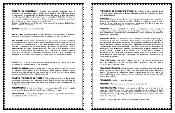 MEDIDAS DE SEGURIDAD.-Providencia, con carácter preventivo para la sociedad y la corrección para el sujeto, se adoptan con los individuos que se encuentran en el estado peligroso desde el punto de vista de la defensa social de carácter general. Estas medidas aún cuando practicadas en todos los tiempos, por ejemplo, con los locos furiosos, no se habían elegido en un completo sistema de prevención penal y social hasta que lo proclamó así la Escuela Positivista que en el Derecho Penal crearon Criminalistas de la talla de Ferri, Lombroso y Garófalo.