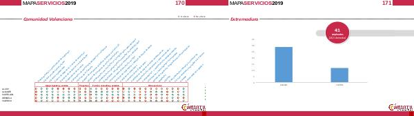 171 MAPASERVICIOS2019 Extremadura 41 empleados [20,5 de media] 35 30 25 20 15 10 5 0 BADAJOZ CACERES