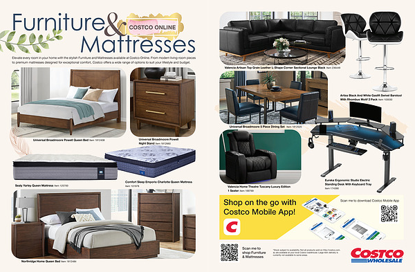 Elevate every room in your home with the stylish Furniture and Mattresses available at Costco Online. From modern living‐room pieces