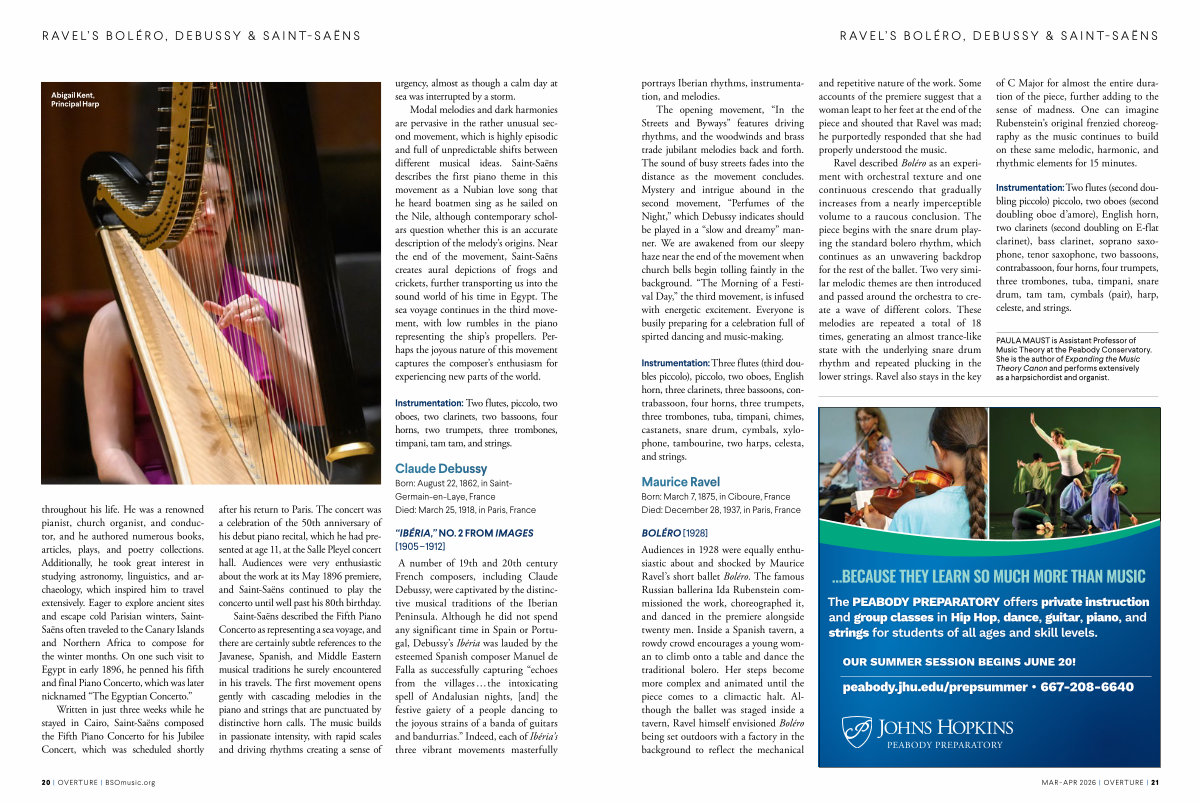 RAVEL’ S BOLÉRO, DEBUSSY & SAINT-SAËNS portrays Iberian rhythms, instrumentation, and melodies.