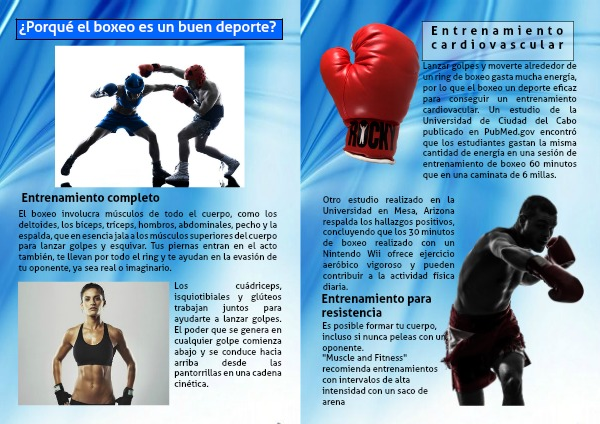 El boxeo involucra músculos de todo el cuerpo, como los deltoides, los bíceps, tríceps, hombros, abdominales, pecho y la espalda, que en esencia jala a los músculos superiores del cuerpo para lanzar golpes y esquivar. Tus piernas entran en el acto también, te llevan por todo el ring y te ayudan en la evasión de tu oponente, ya sea real o imaginario.
