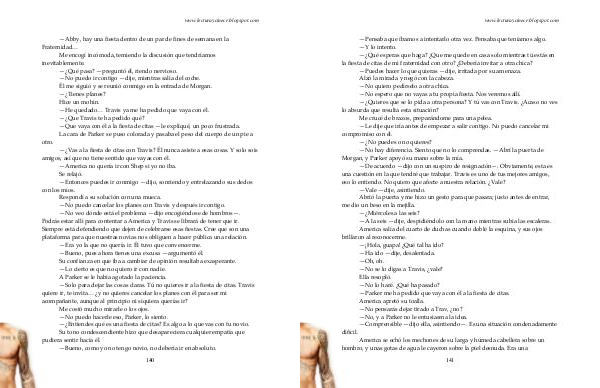 Me encogí incómoda, temiendo la discusión que tendríamos inevitablemente.—¿ Qué pasa?— preguntó él, riendo nervioso.— No puedo ir contigo— dije, mientras salía del coche. Él me siguió y se reunió conmigo en la entrada de Morgan.—¿ Tienes planes? Hice un mohín.— He quedado … Travis ya me ha pedido que vaya con él.—¿ Que Travis te ha pedido qué?— Que vaya con él a la fiesta de citas— le expliqué, un poco frustrada. La cara de Parker se puso colorada y pasaba el peso del cuerpo de un pie a otro.—¿ Vas a la fiesta de citas con Travis? Él nunca asiste a esas cosas. Y solo sois amigos, así que no tiene sentido que vayas con él.— America no quería ir con Shep si yo no iba. Se relajó.— Entonces puedes ir conmigo— dijo, sonriendo y entrelazando sus dedos con los míos. Respondí a su solución con una mueca.— No puedo cancelar los planes con Travis y después ir contigo.— No veo dónde está el problema— dijo encogiéndose de hombros—. Podrás estar allí para contentar a America y Travis se librará de tener que ir. Siempre está defendiendo que dejen de celebrarse esas fiestas. Cree que son una plataforma para que nuestras novias nos obliguen a hacer pública una relación.— Era yo la que no quería ir. Él tuvo que convencerme.— Bueno, pues ahora tienes una excusa— argumentó él. Su confianza en que iba a cambiar de opinión resultaba exasperante.— Lo cierto es que no quiero ir con nadie. A Parker se le había agotado la paciencia.— Solo para dejar las cosas claras. Tú no quieres ir a la fiesta de citas. Travis quiere ir, te invita … ¿ y no quieres cancelar los planes con él para ser mi acompañante, aunque al principio ni siquiera querías ir? Me costó mucho mirarle o los ojos.— No puedo hacerle eso, Parker, lo siento.—¿ Entiendes qué es una fiesta de citas? Es algo a lo que vas con tu novio. Su tono condescendiente hizo que desapareciera cualquier empatía que pudiera sentir hacia él.— Bueno, como yo no tengo novio, no debería ir en absoluto.
