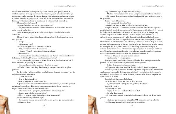 Apoyé la mejilla en su espalda y cerré los ojos, mientras respiraba su olor. Me recordó a su apartamento, a sus sábanas y a cómo olía cuando iba por su casa con una toalla anudada en la cintura. La ciudad se volvía borrosa a nuestro paso, y no me importaba lo rápido que conducía o el frío que me azotaba la piel; ni siquiera me fijaba en dónde estábamos. Solo podía pensar en su cuerpo contra el mío. No teníamos destino ni horario, y cruzábamos las calles mucho después de que todo el mundo, excepto nosotros, las hubiera abandonado. Travis se detuvo en una gasolinera y aparcó.—¿ Quieres algo?— me preguntó. Dije que no con la cabeza, mientras me bajaba de la moto para estirar las piernas. Me vio desenredarme el pelo con los dedos y sonrió.— Déjalo. Estás acojonantemente guapa.— Sí, parezco sacada de un vídeo de rock de los ochenta— respondí. Él se rio y después bostezó, mientras espantaba las polillas que zumbaban a su alrededor. La boquilla de la manguera tintineó y resonó con más fuerza de lo que debería en la calma de la noche. Parecía que éramos las únicas dos personas sobre la faz de la Tierra. Saqué el móvil y comprobé la hora.— Oh, Dios mío, Trav. Son las tres de la mañana.—¿ Quieres volver?— preguntó con gesto de decepción. Apreté los labios.— Sería mejor que sí.—¿ Sigue en pie lo de los bolos de esta noche?— Ya te he dicho que sí.— Y vendrás conmigo a la fiesta de Sig Tau dentro de un par de semanas,