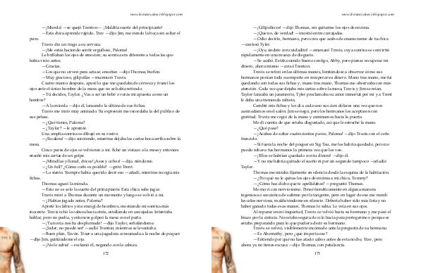 Al reparar en mi inquietud, Travis se volvió hacia su hermano y me pasó el