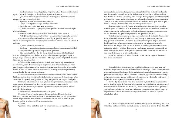 descolgando una, Travis cayó sobre mi espalda envolviéndome con los brazos