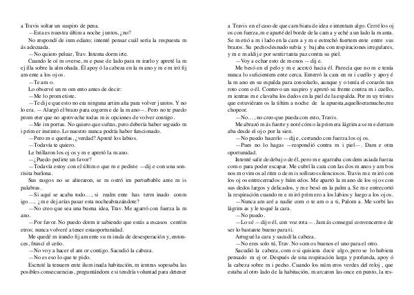 nos m ovim os al ritm o de m is sollozos silenciosos. Travis m e m iró con