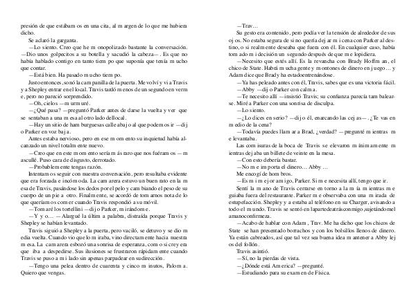 esa de Travis, pasándose los dedos por el pelo y cam biando el peso de su