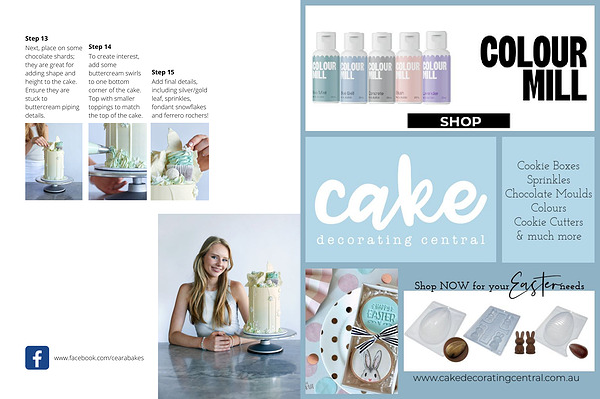 Step 15 Add final details , including silver / gold leaf , sprinkles , fondant snowflakes and ferrero rochers ! www . facebook . com / cearabakes