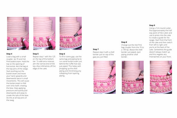 Step 9 Using a 7cm round cutter , find approximately the half way point of the cutter and use to press into the cake to create a guide for the swags . Start from the front of the cake and then switch from left to right until you ’ re at the back of the cake . Sometimes the guide doesn ’ t always match up and this negates any mismatches on your front .