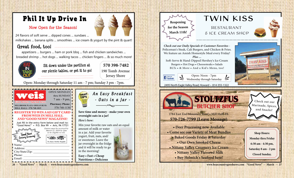 REGISTER TO WIN A $ 25 GIFT CARD FROM WEIS IN MILL HALL AND“ GOOD NEWS” MAGAZINE!