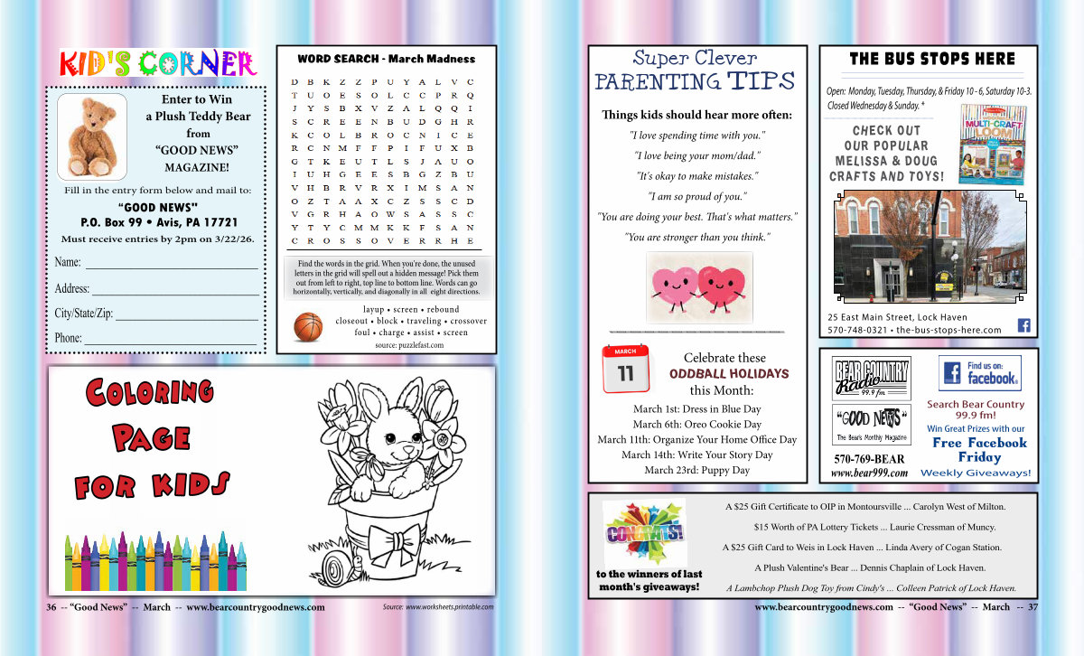A Plush Valentine ' s Bear... Dennis Chaplain of Lock Haven. A Lambchop Plush Dog Toy from Cindy ' s... Colleen Patrick of Lock Haven. www. bearcountrygoodnews. com--“ Good News”-- March-- 37